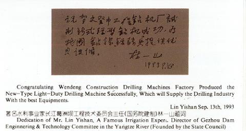 國家水利部林一山副部長題詞