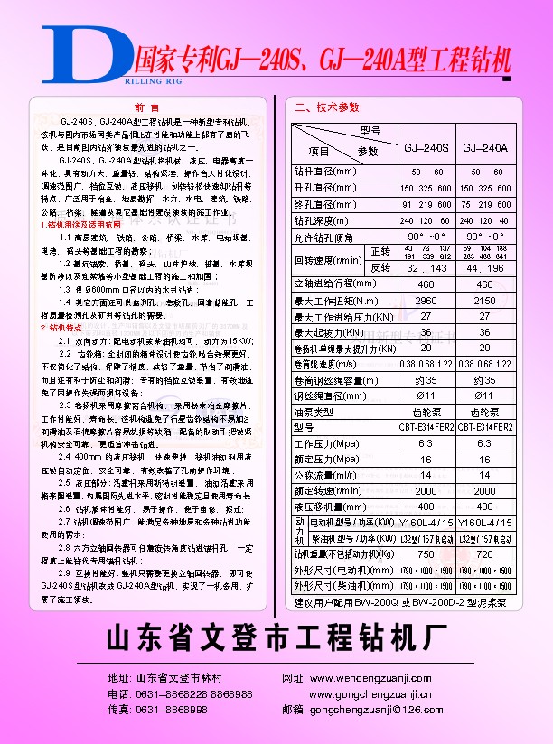 GJ-240A型鉆機的特點